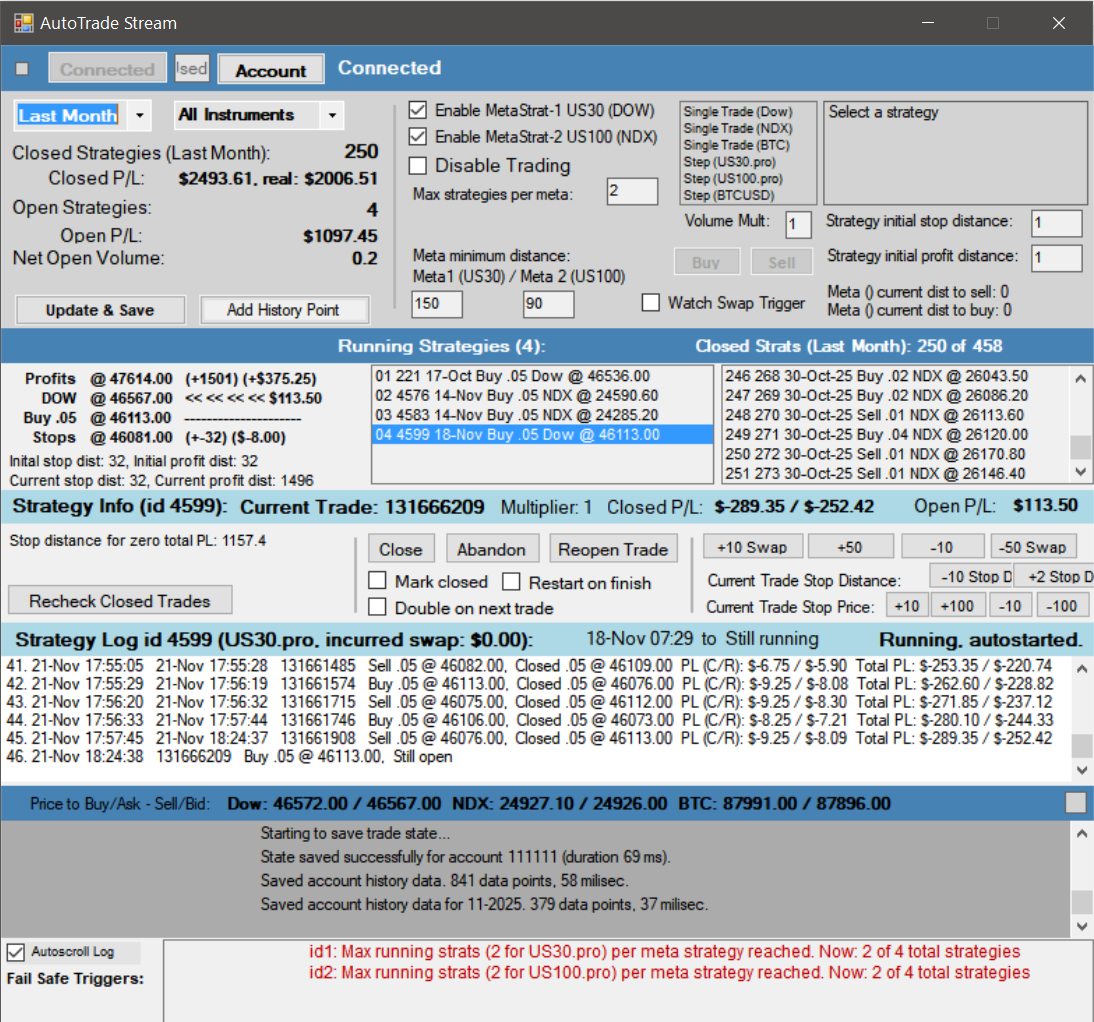 Automated trading platform that connects to US equity markets and does automated trading of US index futures.